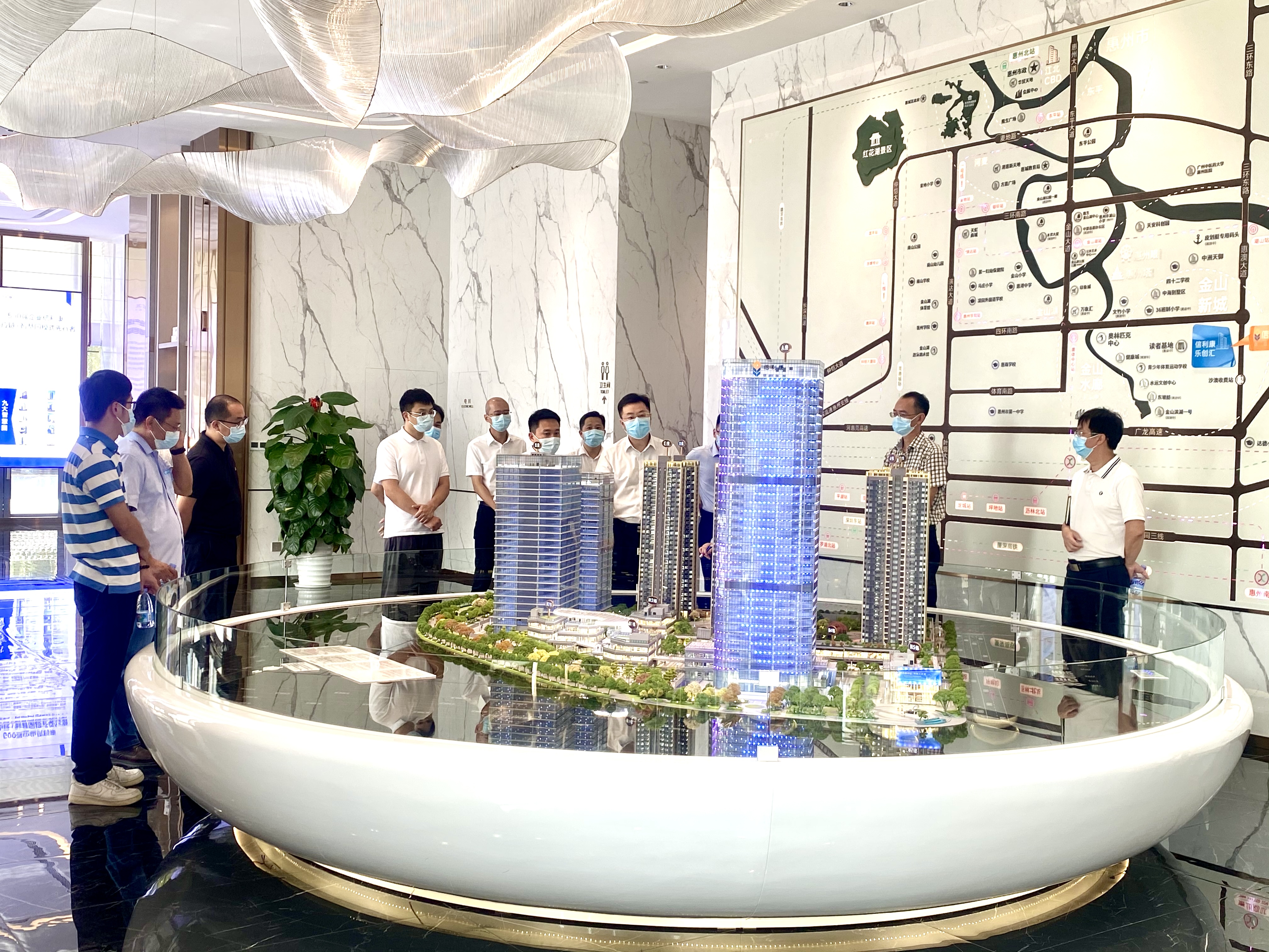 7月18日,惠城区委副书记、区长翟树宇一行莅临位于金山湖片区的信利康乐创汇智慧园展开调研工作,实地调研项目建设运营情况,区相关单位以及三栋镇等领导参加调研活动。
